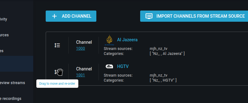 - Reordering: You can drag and drop streams within the channel's settings to change their priority.